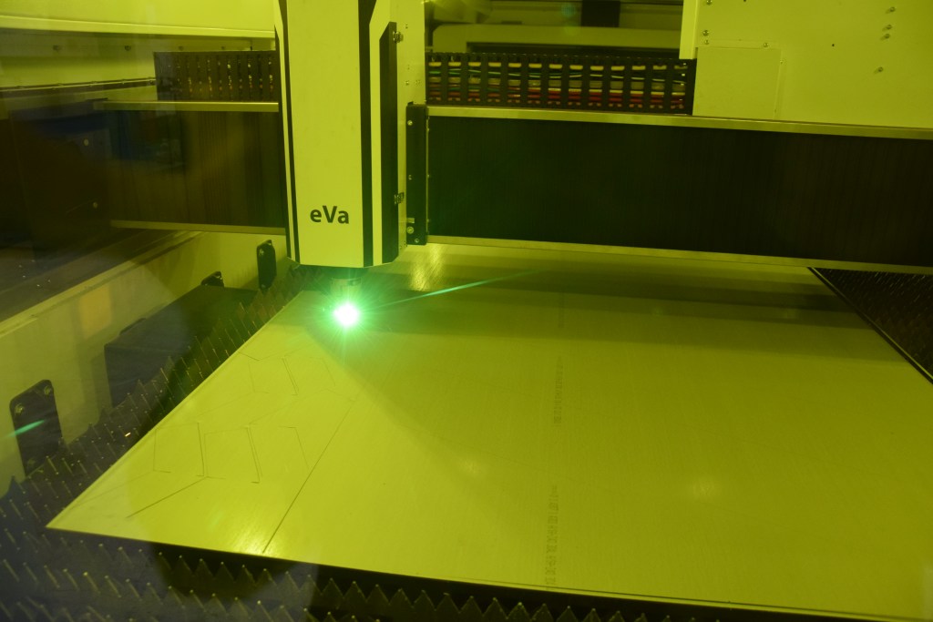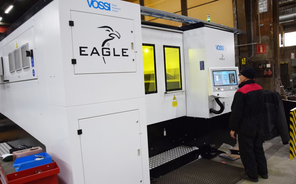 Taloon vasta asennettu, Vossin toimittama kuitulaser on Eagle eVision 2060 10 kW:n tehoin 2×6 metrin pöydällä varustettuna, kuten talon tekemisten kokoluokka sanelee.
