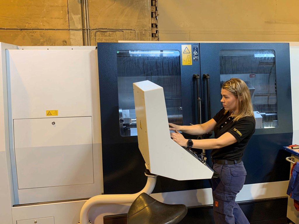 Terässaari Oy:n uutta heinäkuussa asennettua Spinner CNC-sorvia ohjaa alanvaihtaja Jetta Ojala. Uusi työ ja ala innostavat nuorta naista kehittymään työssään hyväksi koneistajaksi. Konepajateollisuus sopii erinomaisesti myös naisille.