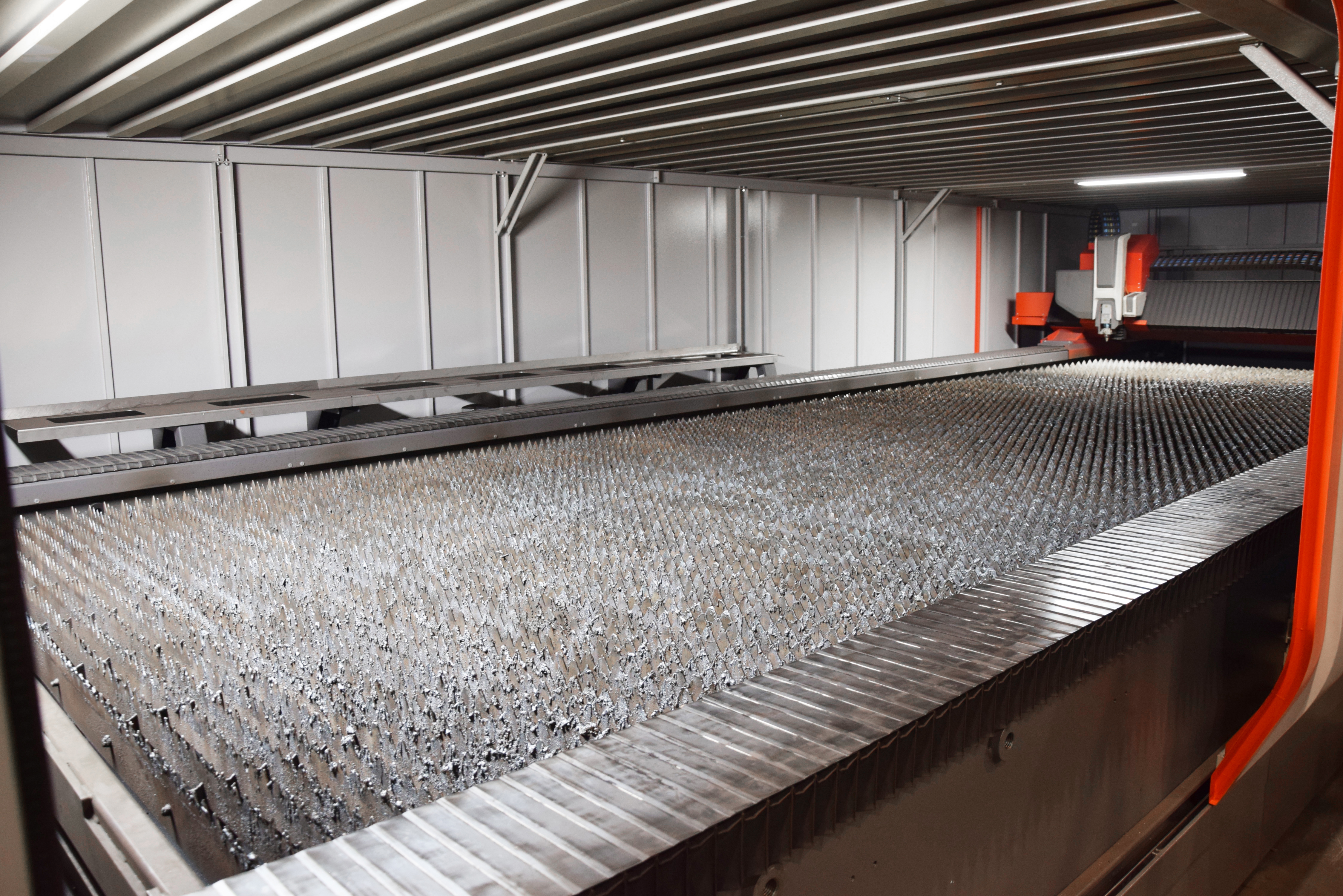 Kone on yksikön neljäs laser ja nyt kolmas kuitulaser ja samalla kokoluokaltaan saman kategorian kaveri yksikön uudelle kookkaalle särmäyskalustolle. Työleveydeltään seitsemänmetrinen muuttuva-aukkoisella alatyökalulla varustettu särmäyspuristin on yksikön parinvuoden takainen lisäys tälle alueelle.