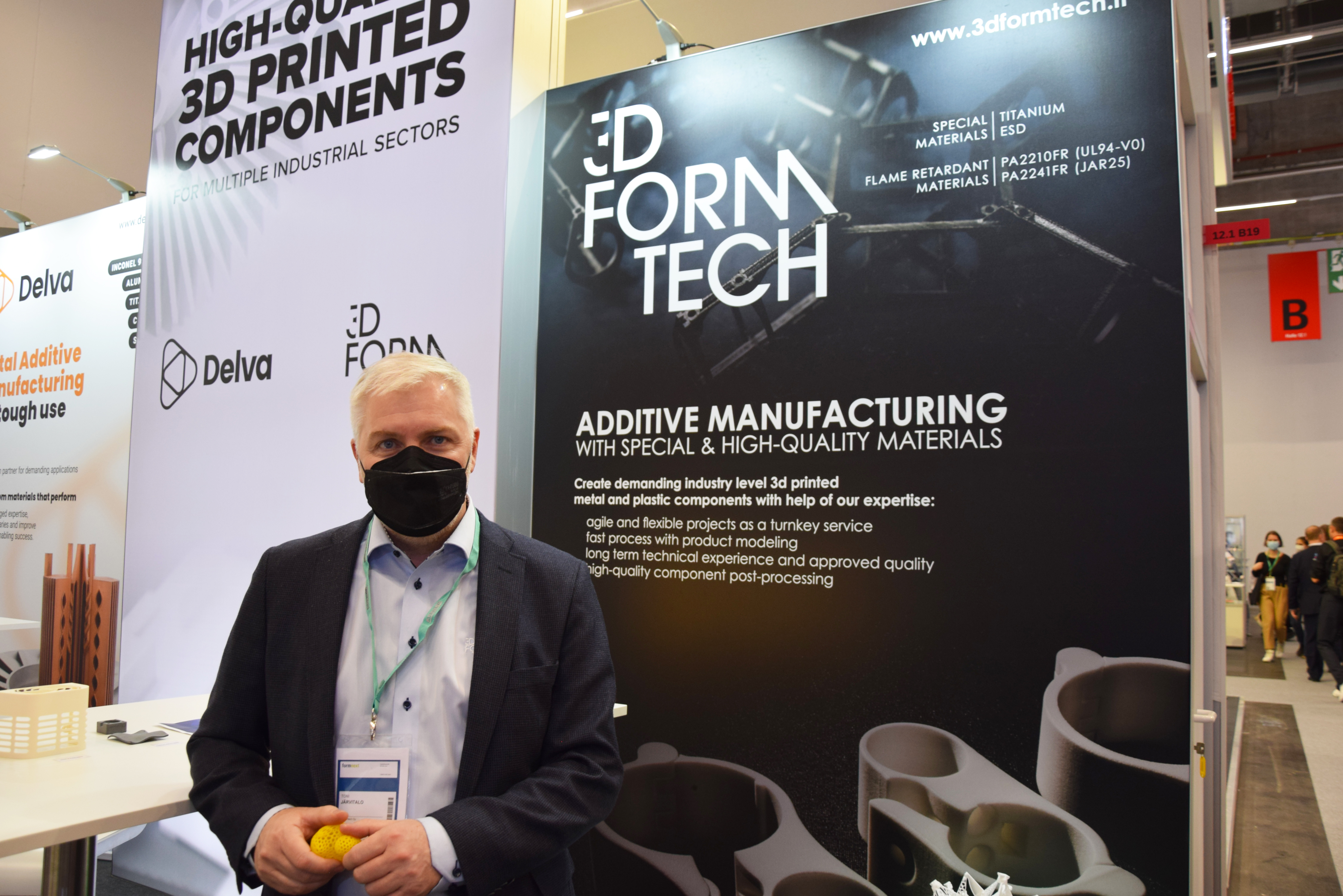 Suomalaisiakin näytteilleasettajia Formnextissä oli jälleen mukana. 3D Formtech on Jyväskylässä toimiva ja nyt ensi kerran Formnextissa näytteilleasettajana esittäytynyt tuttu AM-palveluntarjoaja niin muovin kuin metallinkin tulostuksessa. Ala on kansainvälinen, Euroopan markkinat kiinnostavat, kertoi Toni Järvitalo.