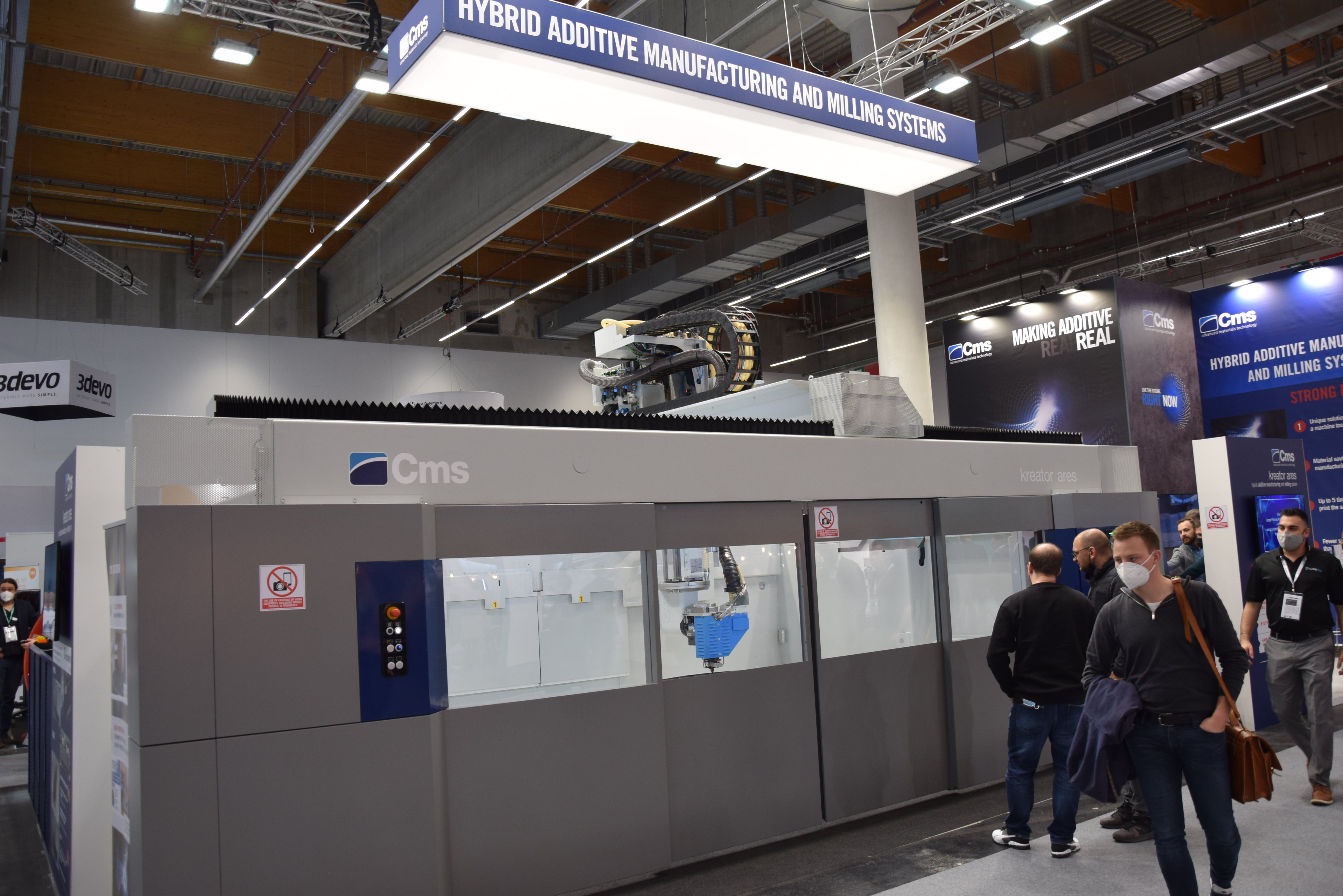 Samassa kokonaisuudessa: messujen varmasti kookkain yksittäinen tuotantoyksikkö oli tarkastelussa Cms:n osastolla. Yritys esitteli työalueeltaan avaran hybridiratkaisun 3D-tulostukseen ja jyrsintään. Valmistaja tähdentää varsinkin ajan ja materiaalisäästöjä tuotannossa kokonaisuuden myötä.
