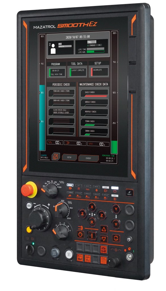 Ohjaus VCE-600:ssa on Mazakin uusin CNC, MAZATROL SmoothEz, CNC, joka on kehitetty erityisesti lähtötason koneille ja joka tarjoaa käyttäjän avuksi mm. hyvin intuitiivisen ohjelmoinnin. Tämä uusi SmoothEz -ohjaus oli mukana messuosastolla useammassakin yhteydessä.