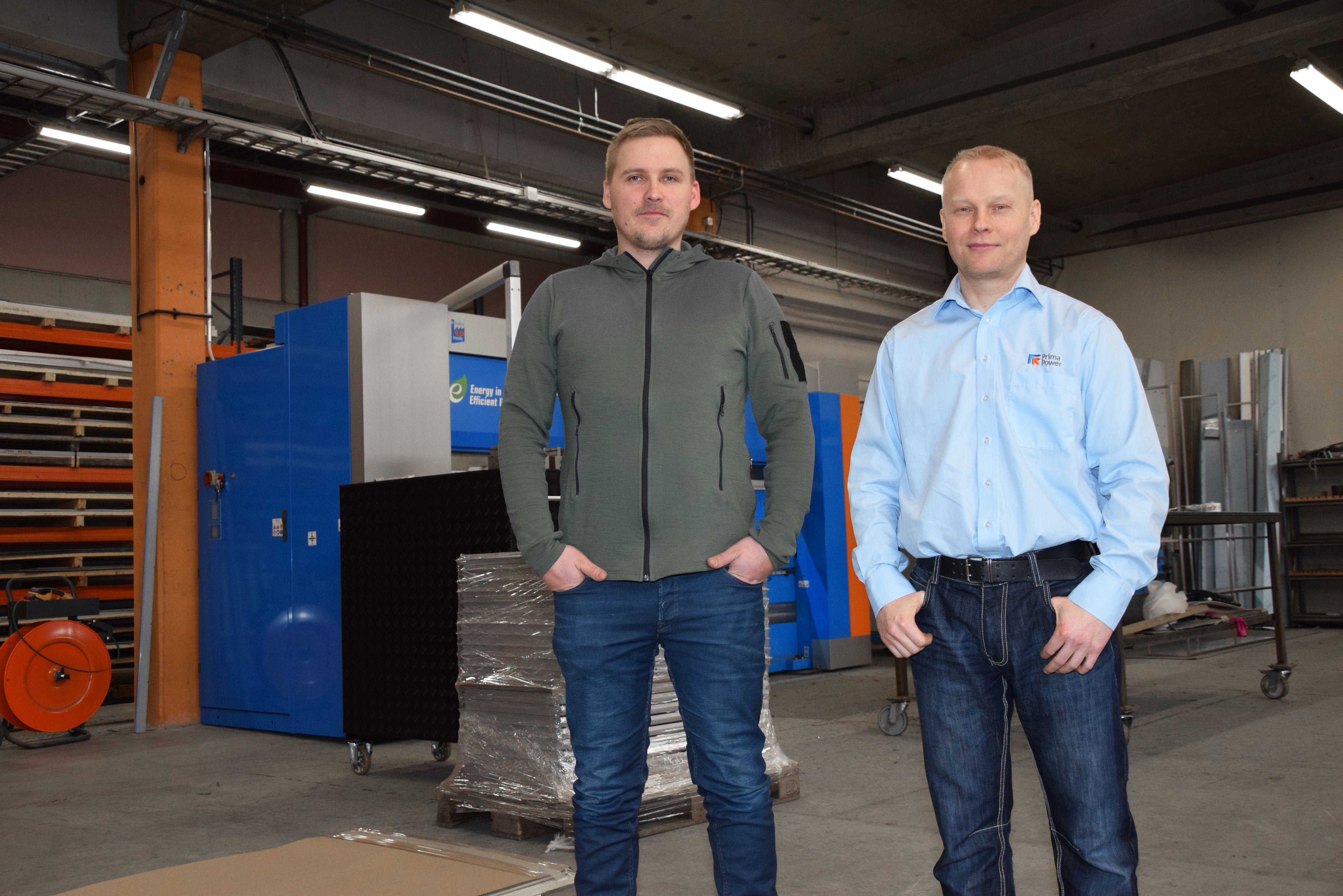 Nuori yritys teki alkuun töitä yksi kerrallaan käytettynä hankituin konein ja laittein. Pari vuotta sitten yritys hankki uuden levyleikkurin ja nyt viime vuoden syksyllä tehtiin sitten isompi loikka yrityksen särmäyksen kalustossa. Aiemman hydraulisen Prima Power-särmärinsä kaveriksi yritys hankki uuden koneen samalta valmistajalta. Se toi uusia mahdollisuuksia lisäämällä taivutusleveyttä ja puristusvoimaa ja samalla yrityksessä siirryttiin sähköservoteknologian aikaan.