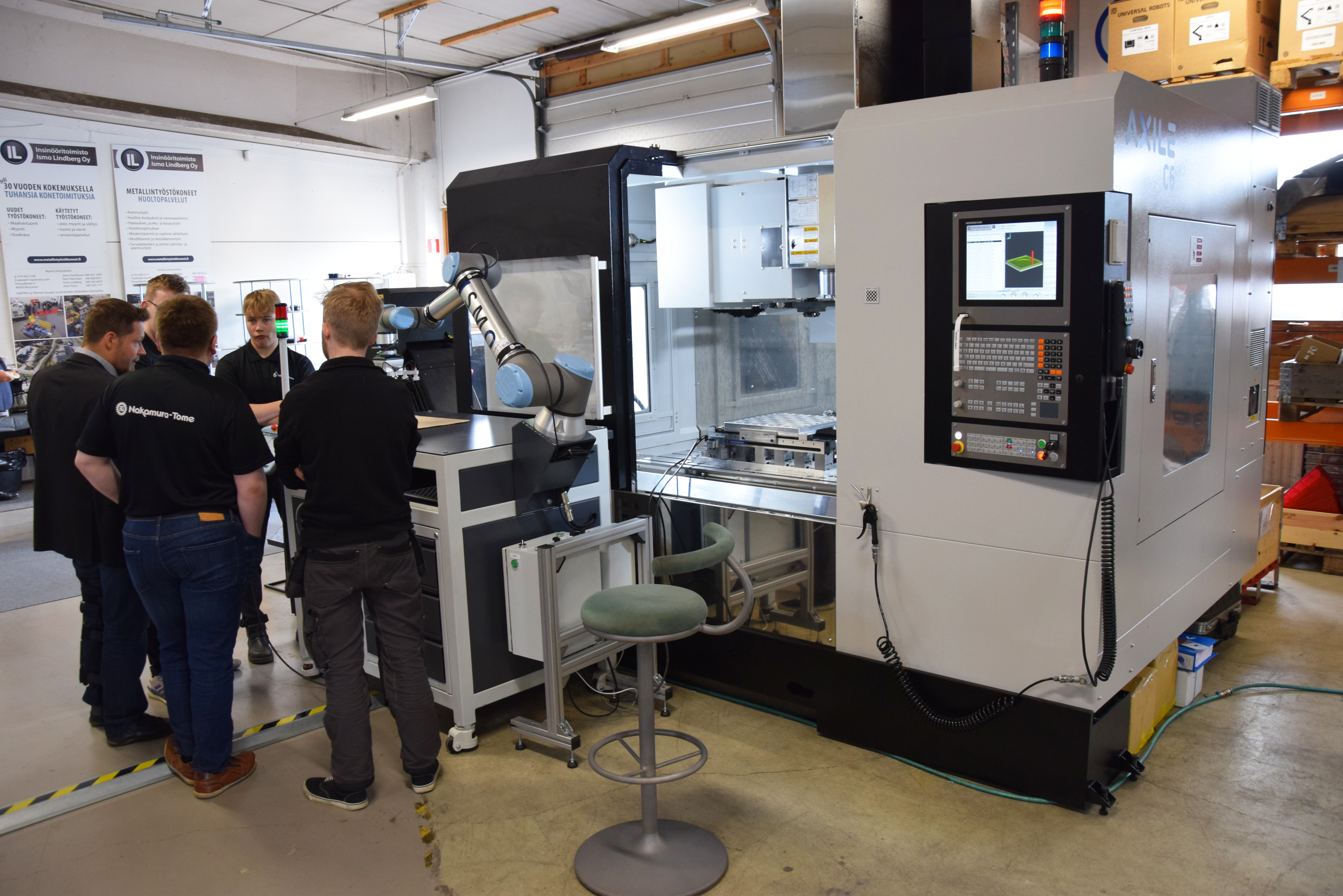 Vastaavasti nappulat tehtiin Nakamura-Tome WY-150 sorvauskeskuksella, kappaleiden jatkokäsittelyssä oli mukana UR5e-yhteistyörobotti.