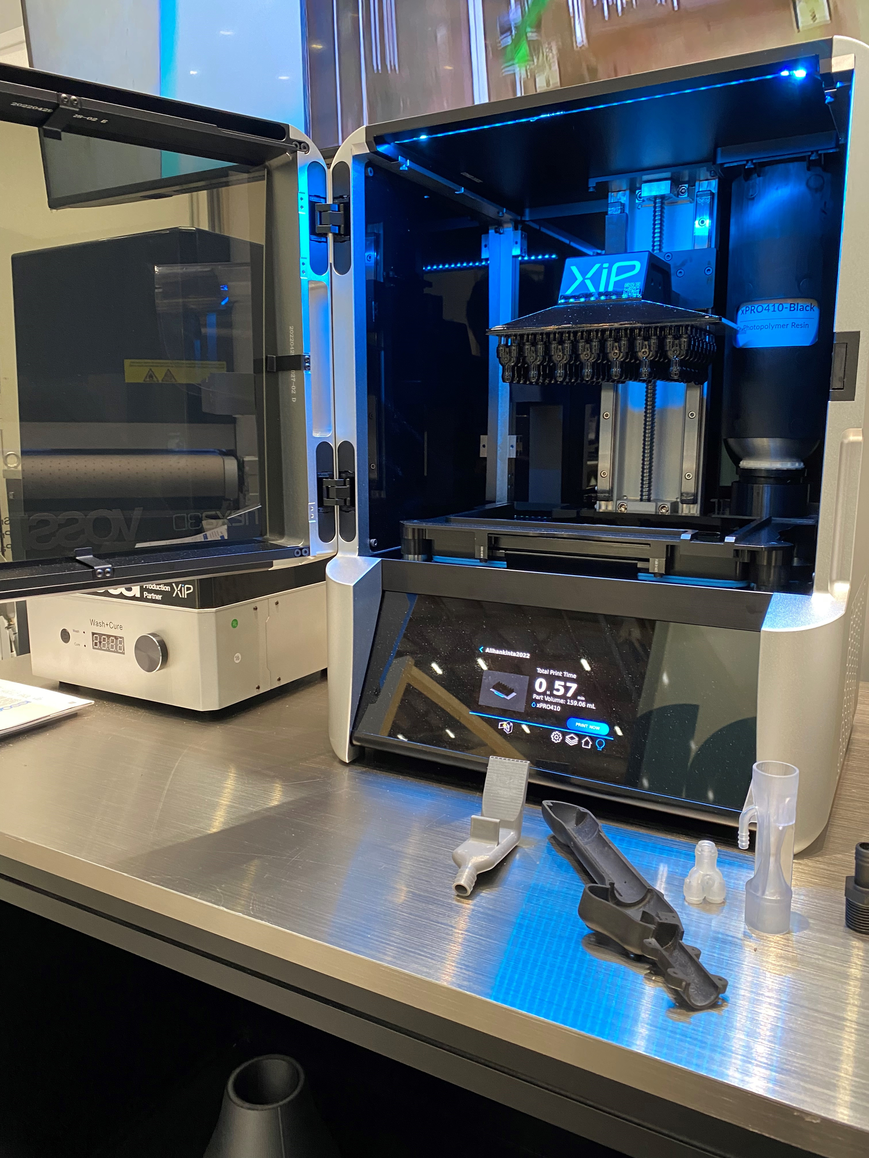 Alihankintamessuilla Vossin osastolla olivat tarkastelussa mm. EMCO Hyperturn 45 G3 sorvauskeskus, automaattinen levyhiomakone Timesavers RB32 sekä ultranopea 3D-muovitulostin Nexa3D XIP.