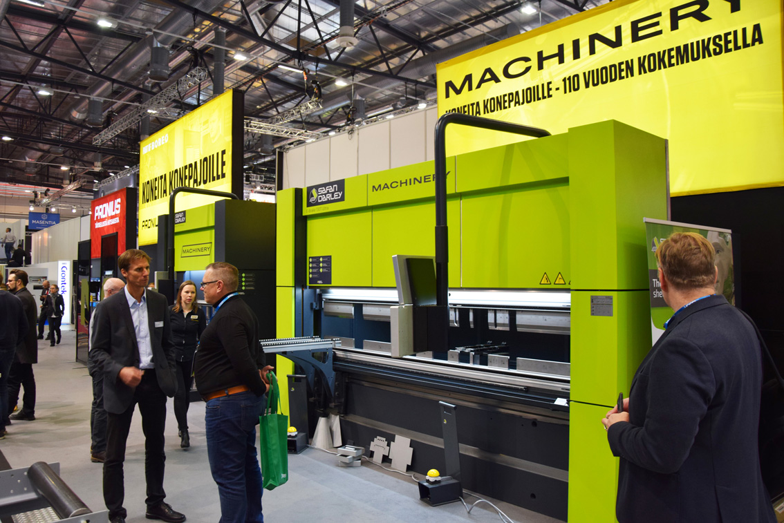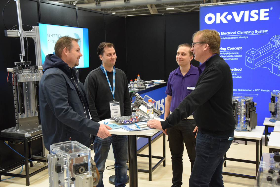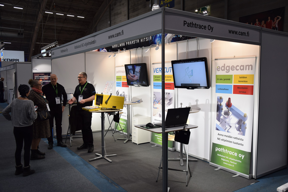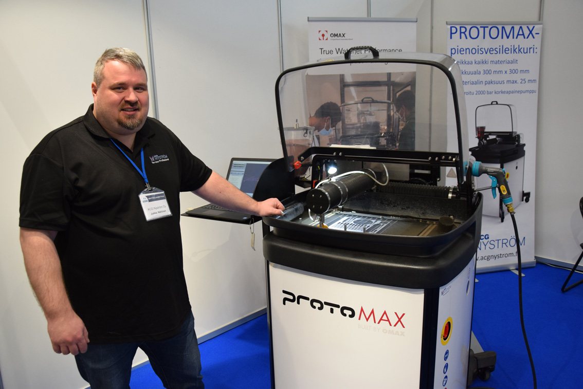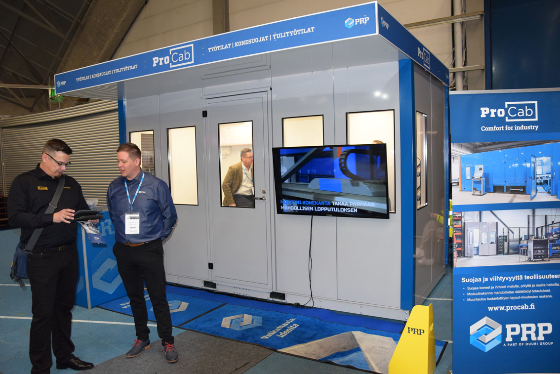 Insinööritoimisto Ismo Lindbergin osastolla esillä oli mm. Ajankohtaista ja talon päämerkkeihin kuuluvan Nakamura-Tomen konetarjontaa. Kuvan NTY3-150 on japanilaisvalmistajan uuden malliston kolmirevolverinen ja kolmella Y-akselilla varustettu monitoimisorvi. Se tekee jatkossa töitä Escomaticilla.JFY-kuitulaserleikkauskoneet ovat Suomessa uusi alan merkki ja niiden maahantuoja on pitkän huolto- ja kunnossapitotaustan omaava ja nyt myös levytyökoneiden mahantuonnin myynti- ja edustustöihin aloittanut NCT-Service. Konepajamessuilla uusista kuvioista ja valmistajan tarjonnasta olivat kertomassa Teemu Bruun ja Markus Rauhala. OK-Vise esitteli tuotteitaan Konepaja-messuilla A-hallissa ja esimerkiksi talon uutuus eli sähköinen automaattisen kiinnitykseen tarkoitettu Elva-kiinnitysjärjestelmä oli osastolla tukevasti teemana. Uusi sähköinen menetelmä on tehokas ja valmistajan mukaan myös hydrauliikkaa yksinkertaisempi toteuttaa. Suojaa ääneltä, turvallisuutta tulitöihin. PRP tunnetaan teollisuudessa sopimusvalmistajana ja julkisivurakentajana. Yrityksen ProCab-työtilat soveltuvat niin äänieristetyksi työtilaksi, konesuojaksi tai tulityötilaksikin. Marko Lammi kertoi tuotteista.Kätevä koko. ProtoMAX-pienoisvesileikkuri on leikkuualaltaan pieni, 304 mm x 304 mm, mutta monipuolinen se on, leikata voi leikata lähes mitä tahansa materiaalia, kuten vesileikkausteknologian etuihin kuuluu. Kone oli mukana ACG Nyströmin osastolla, Jukka Nättinen esitteli. Pathtracen osasto on Alihankinta-messuilla tuttu näkyvällä paikalla A-hallin sisääntulossa, nyt Konepajassa Kari Kuutela ja Pauli Manninen pitivät standia keskemmällä A-hallissa. NC-ohjelmat ovat Pathtracen toiminnan ytimessä ja toimintaa takana jo yli 30 vuotta. Yritys tuo maahan ja toimittaa mm. CAM-ohjelmisto Edgecamia ja simulointiohjelmisto Vericutia.Airpron Sami Uusi-Erkkilä kiinnitti huomiota teollisuuden paineilmavuotoihin ja sen kustannuksiin ja esillä oli laitekantaa vuotomittauksiin. Monissa kohteissa 20 % paineilmavuodot suhteessa tuotetun paineilman määrään ovat hyvinkin tyypillisiä. Se tarkoittaa valtaisia turhia sähkökustannuksia, totesi Uusi-Erkkilä.Cenic Finland piti osastoaan E-hallissa. Cenic Finland Oy on konepaja-automaatioalan ohjelmistoihin, koulutukseen ja NC-ohjelmointiin erikoistunut yritys ja edustaa mm. GibbsCAM- ohjelmistoja. GibbsCAM 2023 on vasta ilmestynyt, uutuutena mukana Sandvik Coromantin PrimeTurning -strategioiden toteutus.Vuodesta 1978 toimineen eli yli 35 perinteet omaavan M. Koskela Oy:n erikoisalaa ovat työstökoneiden huoltopalvelut niin koneiden vuosihuolloista aina vaativiin koneiden modernisointeihin asti. Lisäksi ohjelmassa ovat uudet sekä käytetyt metallintyöstökoneet. Messuilla oltiin E-hallissa. Machinery on muuttanut Tampereen seudun toimintonsa hiljattain uusiin tiloihin Pirkkalaan ja piti samanaikaisesti messujen kanssa myös Avoimet ovet -tapahtumaa uudessa toimispisteessä. Konepajassa oli mukana mm. Hyundai-Wian ja SafanDarleyn koneita, kuvassa lähinnä sähköservotoiminen E-Brake 130-3100 Ultra NS särmäyspuristin.Duroc Machine Toolin osastoa Konepajassa. Kahdeksantuumaisella istukalla ja 65-81 mm:n tankokapasiteetilla, 230 mm sorvaushalkaisijalla ja saman kokoisella sorvauspituudella varustettu Doosan Puma TT 2100SYYB-sorvi oli mukana osastolla tuotantosolukokonaisuudeksi muokattuna.