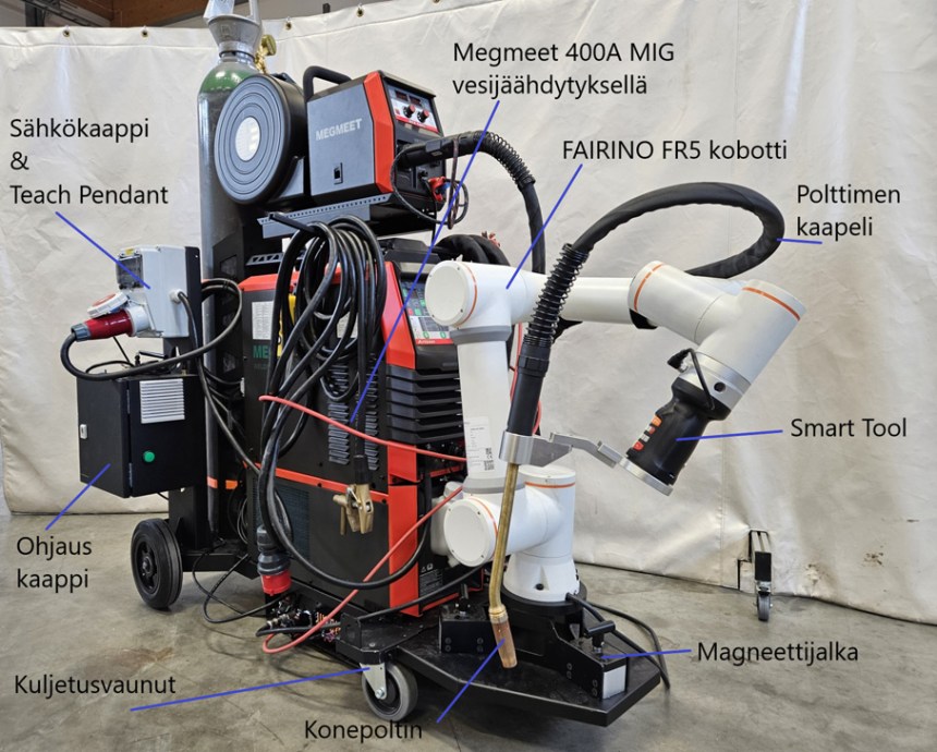 ”Järjestelmä mahdollistaa saumojen täydennyksen nopeasti ja tarkasti ilman tuotannon keskeytyksiä. Hitsausrobotti kuljetetaan vaunulla kohteeseen, kytketään 3-vaiheinen virtajohto ja asetetaan paikalleen magneettikiinnityksellä. Smart Tool -järjestelmällä määritetään hitsisauman alku- ja loppupiste, minkä jälkeen automaattinen hitsaus käynnistyy yhdellä painalluksella.