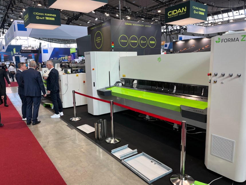 Cidanin messuosastolla oli mukana moniin taivutustöihin ja sarjakokoihin sopiva kanttikone Forma Z. Kone taivuttaa kappaleet ylä- ja alasuuntaan, työkalunvaihdot ovat nopeita yhdistelmäsäteen kaksipuolisilla korkeapainetyökaluilla, automaattisella työkalun lukituksella sekä ohjausjärjestelmän uudella ProLink W -työkalujärjestelmällä.