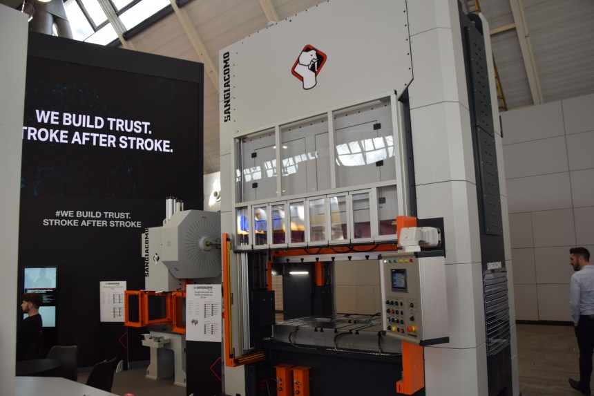 Kansainvälisiä puristinvalmistajia Blechexpossa oli esillä runsaasti, mutta koneita oli osastoilla esillä hyvinkin niukasti. Mm. italialainen Sangiacomo Srl oli messuilla mukana koneiden kanssa. Mallistoon kuluvat mekaaniset nelipilaripuristimet ja C-kehän mekaaniset epäkeskopuristimet, lähinnä nelipilaripuristinmalli 250 kN puristusvoimin ja 37 kW moottoritehoin.
