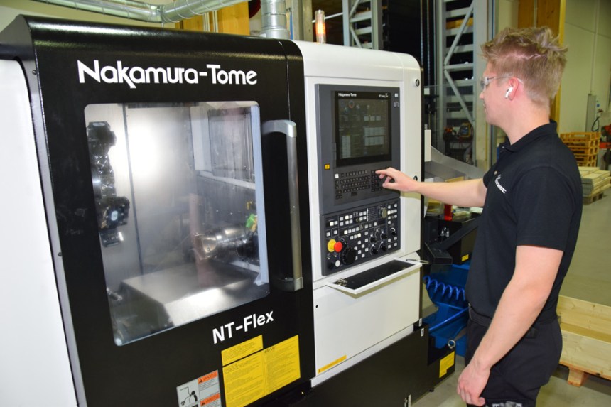 Myös Nakamura-Tome -kalusto on vahvistunut. Valmistajan koneita on ennestään Eskomaticilla useita käytössä, uusi lisäys on japanilaisvalmistajan tuore konetyyppi NT-Flex, kompakti monitoimisorvi kahdella revolverilla, pyörivillä työkaluilla ja tangosyöttölaitteella.