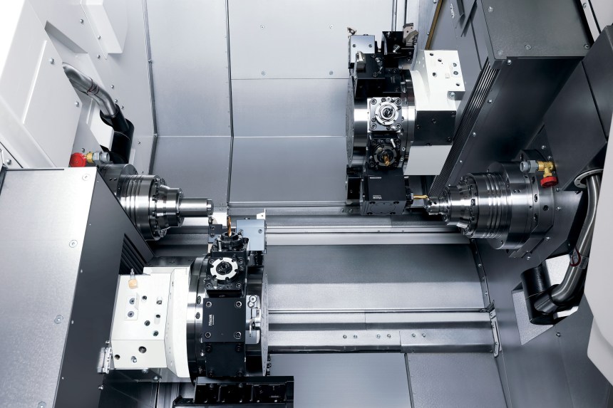 Kaksi identtistä sorvauskaraa, revolveria ja Y-akselia. Ohjelmointi tapahtuu 2-kanavaisella MAZATROL SmoothG -ohjauksella.