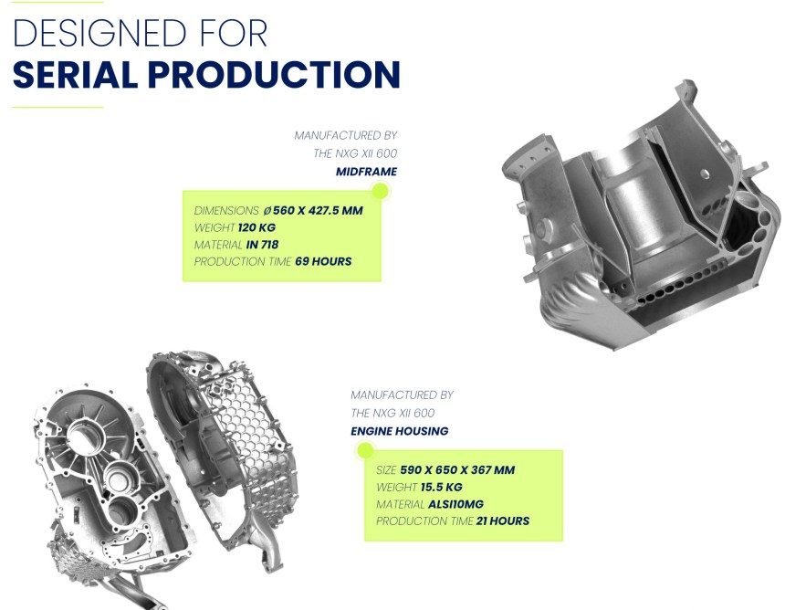 NXG XII 600 on markkinoiden nopein kone, 20 kertaa nopeampi kuin yksilaserinen kone ja täynnä innovatiivisia teknisiä ominaisuuksia, kuten lasersäteen zoomaus-toiminto korkeimman tuottavuuden ja luotettavuuden saavuttamiseksi. Se on suunniteltu käytettäväksi sarjatuotannossa korkean kappalevolyymin osissa sekä suurin osien tulostukseen tunneissa päivien sijaan. Radikaalisti alhaisemmat kappalekustannukset, tulostusajat sekä massiivinen tulostustilavuus avaavat uusia mahdollisuuksia eri teollisuuden aloille.