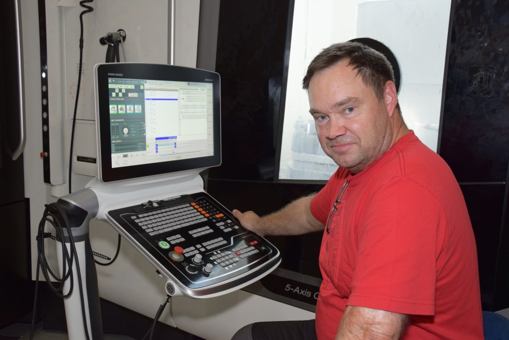 Simultaaniseen 5-akselisen koneistuksen mahdollistava koneistuskeskus on PTH-Metallin suurin kertainvestointi. Koneen ohjauksella Christian Westerlund.