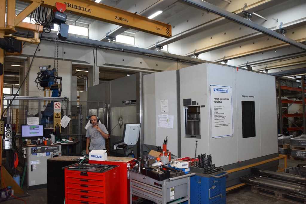 Viime vuosina PTH-Metalli on kehittänyt laitekantaansa ja menetelmiään aktiivisesti eri osastoillaan. Kuvassa koneistuksen aiempaa 5-akselista konekantaa, 4+1 -akselin DMF 360 linear pitkien kappaleiden käsittelyyn.