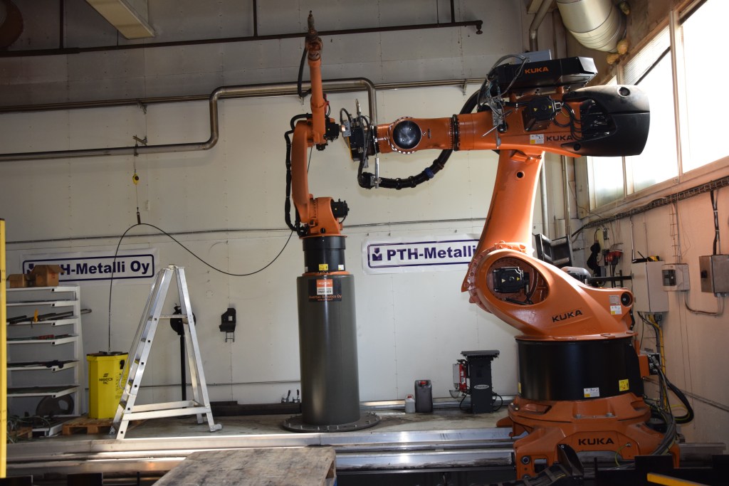 Hitsauksen FMS-linja Kuka-robotein on PTH:n muutaman vuoden takainen laitehankinta.