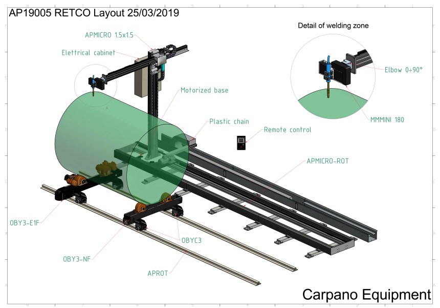 Laitteeksi valikoitui hitsausasema, joka koostuu kevyestä hitsaustornista AP MICRO-CM15 sekä pyöritysrullastosta. Hitsausmenetelmä on lankahitsaus. Torni liikkuu lattiaan asennetulla kiskolla. Tornin viereen on asennettu kiskojen päällä oleva pyöritysrullasto. Näin saadaan rullien etäisyyttä säädettyä kunkin säiliöpituuden mukaan. Hitsausasemassa on mahdollista hitsata maksimissaan 1600 mm:n halkaisijalla olevaa säiliötä.