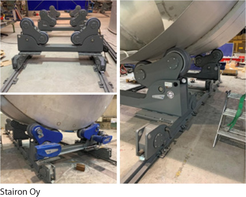 Stairon Oy on kansainvälinen korkealaatuisten ja teknisten ruostumattomasta / haponkestävästä teräslevystä sekä alumiinista valmistettujen laitteistokokonaisuuksien järjestelmätoimittaja. Kasvavan tuotannon ja yhä kookkaampien tuotteiden tehokkaampaan ja ergonomisempaan valmistukseen yrityksessä toteutettiin projekti ruostumattoman pyörähdyskappaleen hitsauksen ja kokoonpanon mekanisointiin, maksimi halkaisija kappaleilla on yli 5 m ja pituus 20 m. Yhteistyössä Pemamekin kanssa toteutettu rullastokokonaisuus koostui itsesäätyvistä 40 tonnin PEMA A40 4D käyttöyksiköistä ja kannatinyksiköistä. Yksiköt asennettiin kiskovaunuihin, jolloin kappaleen pituuden ja valmistusasteen mukaan voidaan helposti siirtää kiskolla haluttuun paikkaan. Myös yhdistettävän kappaleen asemointi helpottui huomattavasti.