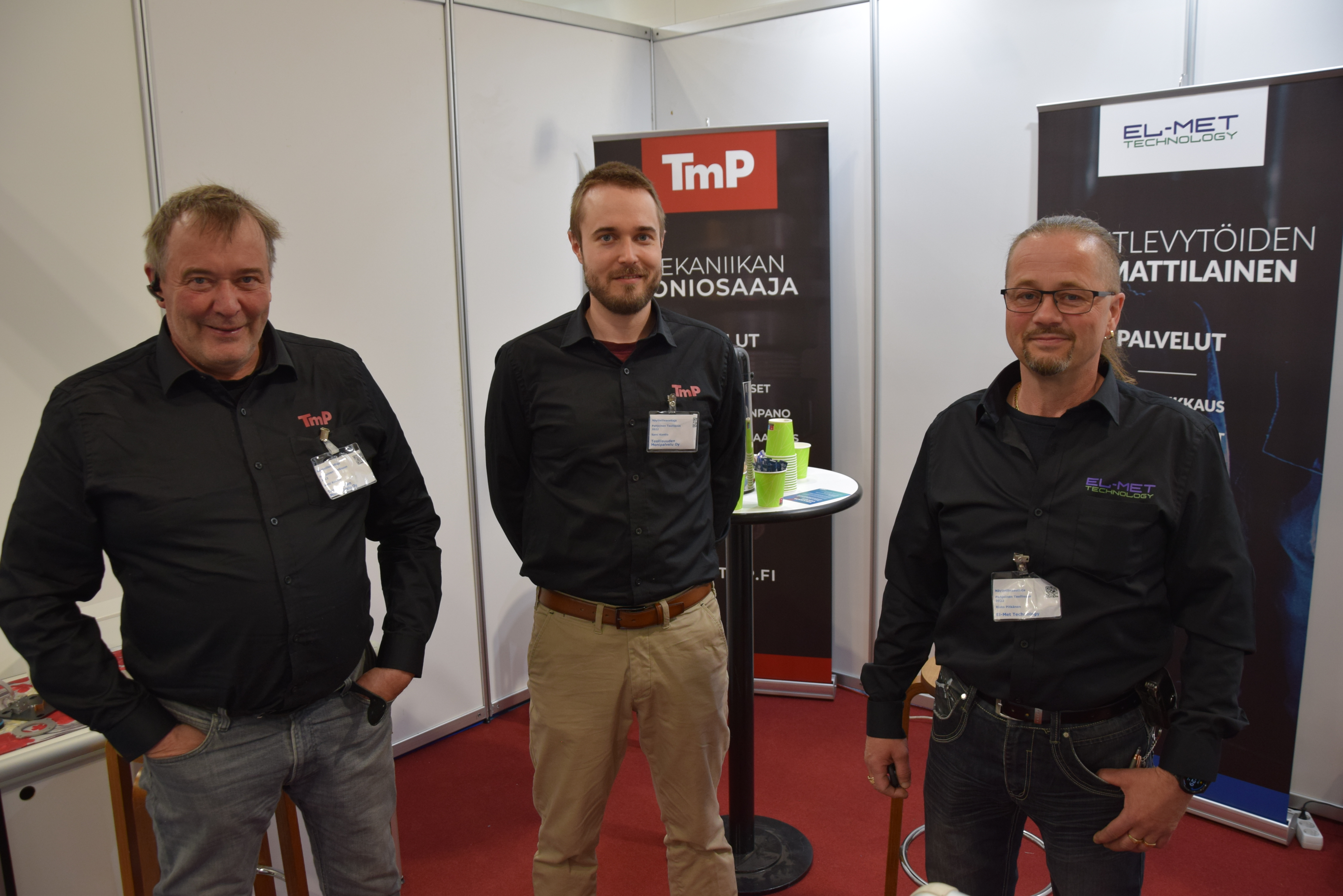 Konepajat Teollisuuden Monipalvelu eli TmP ja El-Met Kempeleeltä olivat mukana Pohjoisen tapahtumassa konkarin ottein. Messujen toimivuutta kiittelivät mm. uusien asiakkaiden tavoittamisessa Antti Kontio, Sami Kontio TmP:ltä ja Risto Pitkänen El-Metiltä.