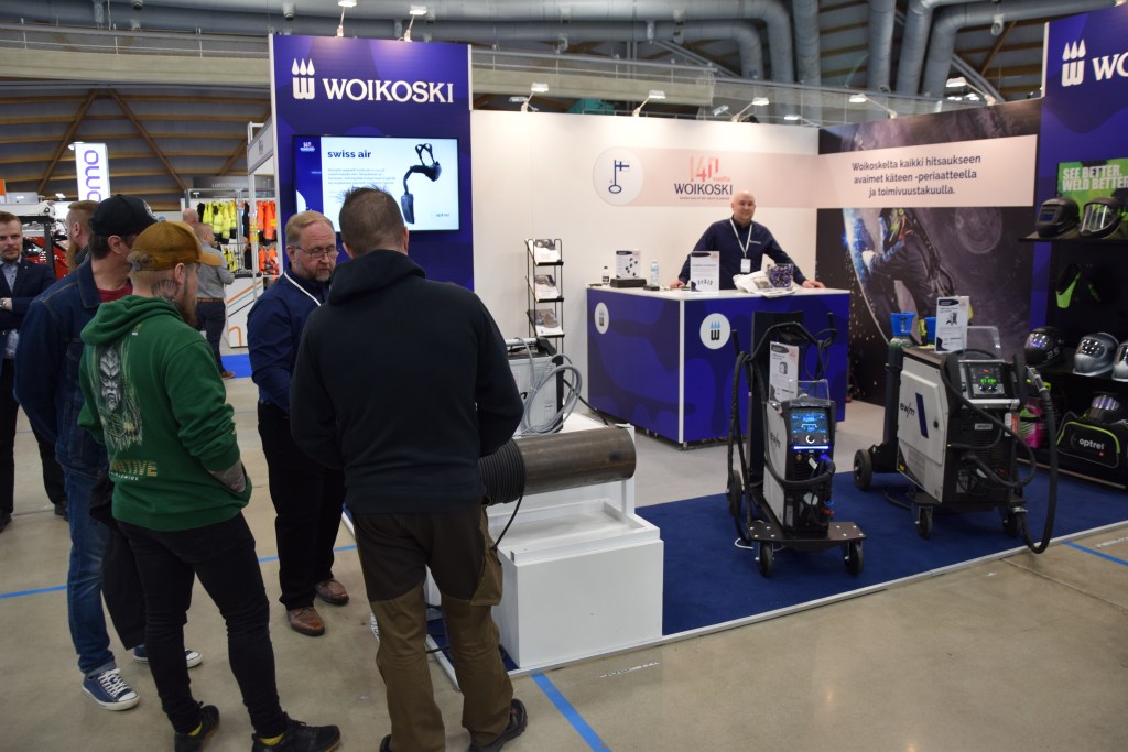 Woikoski oli messuilla avoimella osastolla ja tietenkin avoimin mielin. Kaasut ovat talon tuttua perinteistä ydinteemaa, mutta nykypakettiin kuuluvat myös hitsauslaitteet ja tarvikkeet ja huoltopalvelut kokonaisvaltaisuuden periaattein. Tiskin takana Janne Kahila Tampereelta.