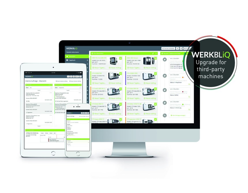 My DMG Moriin voidaan kätevästi yhdistää WERKBLiQ-päivitys, jolloin yhdestä ja samasta paikasta voidaan DMG Morin laitteiden lisäksi hallinnoida myös muiden valmistajien laitteita ja niiden huoltoja omatoimisesti. Päivityksen saa helposti käyttöön yhdellä klikkauksella. Koska molemmat järjestelmät noudattavat samaa toimintalogiikkaa, niiden käyttö on helppo oppia nopeasti. WERKBLiQ sisältää automaattisesti kaikki DMG Morin laitteet, mutta siihen voidaan lisätä myös muiden valmistajien laitteita. Näin koko konekannan sisäisiä ja ulkoisia huolto- ja kunnossapitoprosesseja voidaan hallinnoida mahdollisimman tehokkaasti. WERKBLiQ luo my DMG Moriin yhdistetyn tilin 48 tunnissa. Käyttäjien koulutus ei vie kuin vartin.