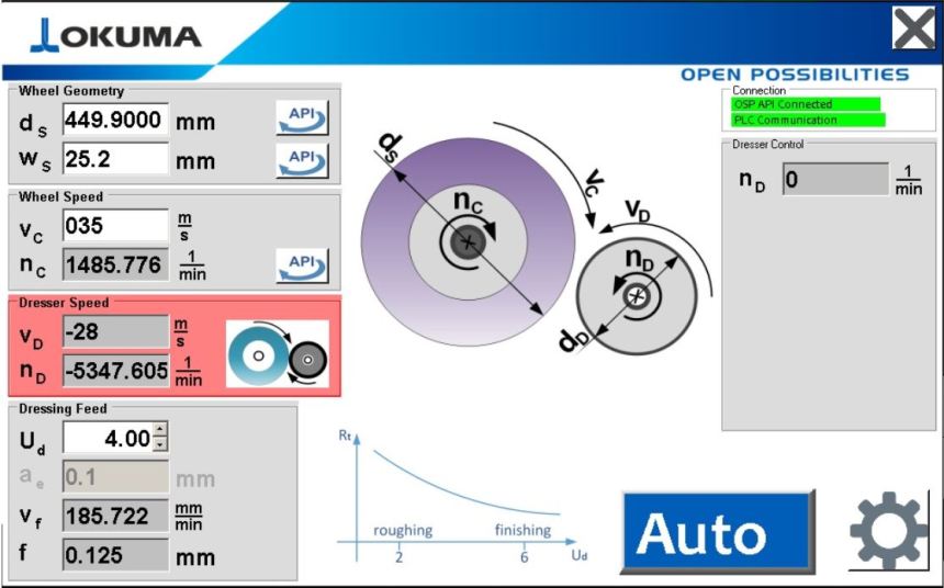 Uusi Okuma-hiontasovellus on Okuman ja Dr. Kaiser Diamantwerkzeuge GmbH & Co. KG: n yhteistyön tulos. Ohjaussovellus laskee hiontaparametrit, lukee itsenäisesti käytettävissä olevat tiedot ja siirtää arvot suoraan CNC-ohjelmaan.