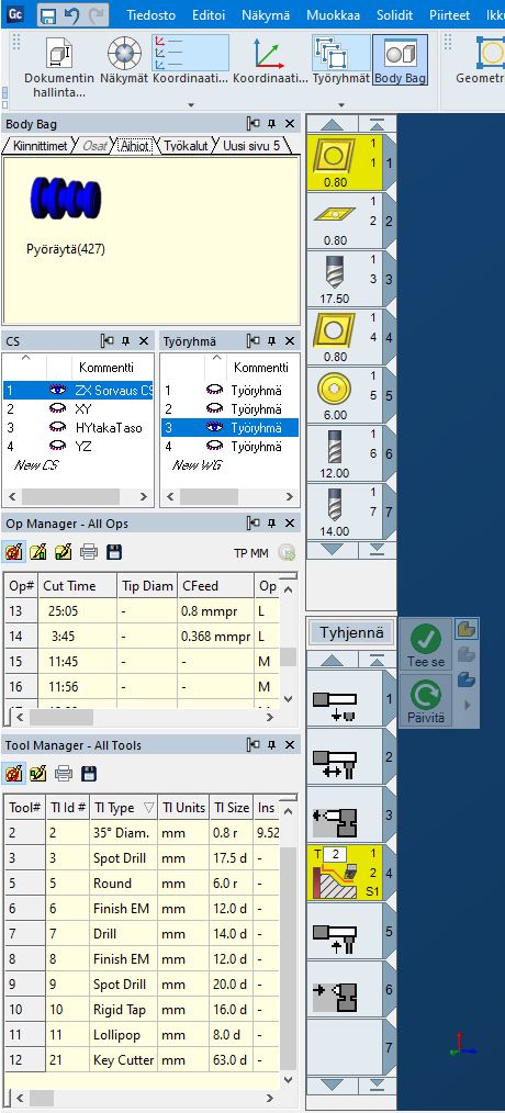 Vapausasteita saadaan lisää, sillä IMT:n avulla saadaan toteutettua myös säädettävien kulmapäiden ohjelmointi revolverisorveilla sekä koneistuskeskuksilla. GibbsCAMeja edustaa Cenic Finland Oy.