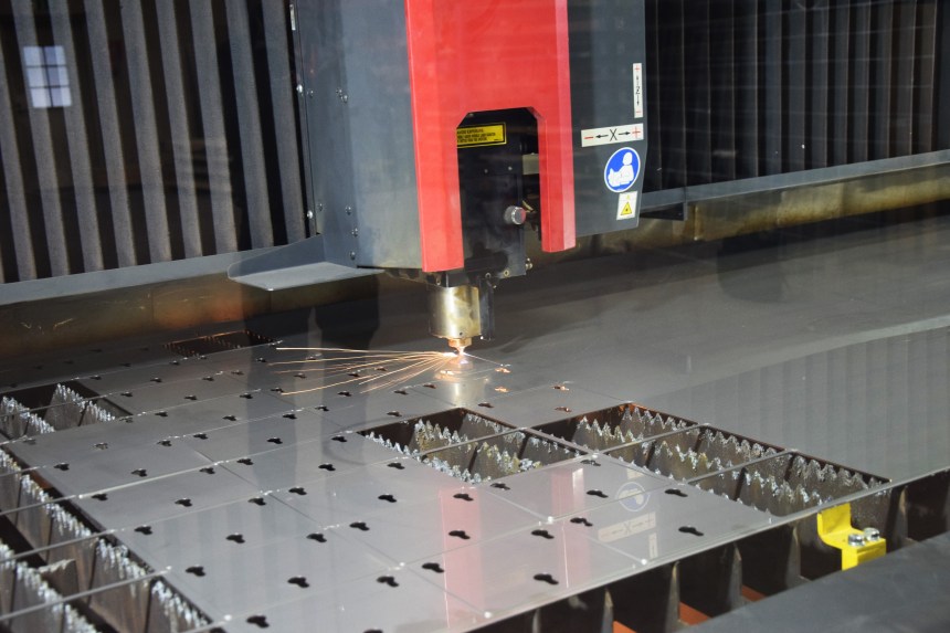 ”Koska vesileikkaus on suorituskykyinen, mutta hidas menetelmä, hankimme myös uuden laserleikkauskoneen, joka mahdollistaa tarvittaessa nopeat leikkaustoimet ja niin ikään varsin vahvojen materiaalien leikkaamisen. Koneella voidaan leikata teräsmateriaaleja aina 25 mm:iin saakka.”