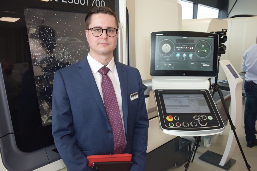 Konemyynti on käynyt viime aikoina hyvin, toteaa toimitusjohtaja Lauri Erkkola. Techday-näyttelyssä mukana ollut NLX 2500/700 on yksi DMG Morin suosituimpia konemalleja.