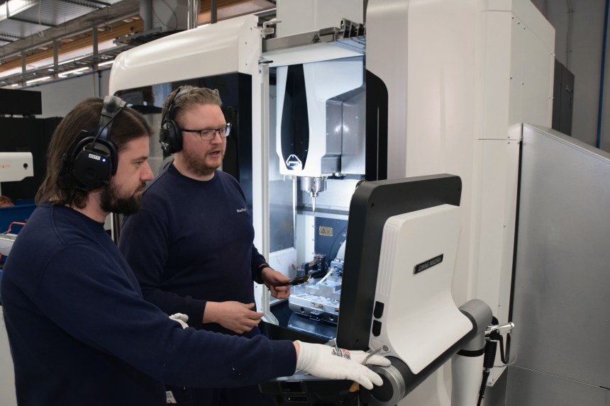 Koneistamossa toimii kaksikin DMU 50-koneistuskeskusta. Toisen ohjauksella Antti Karhamo ja Mikko Mykkänen.