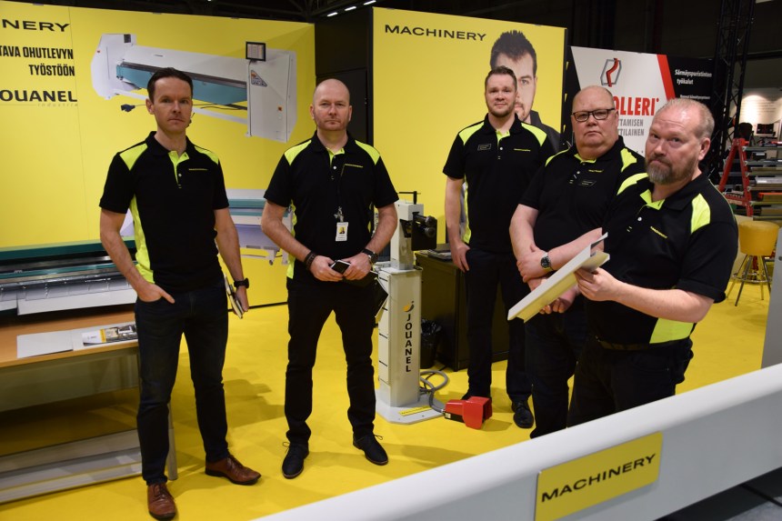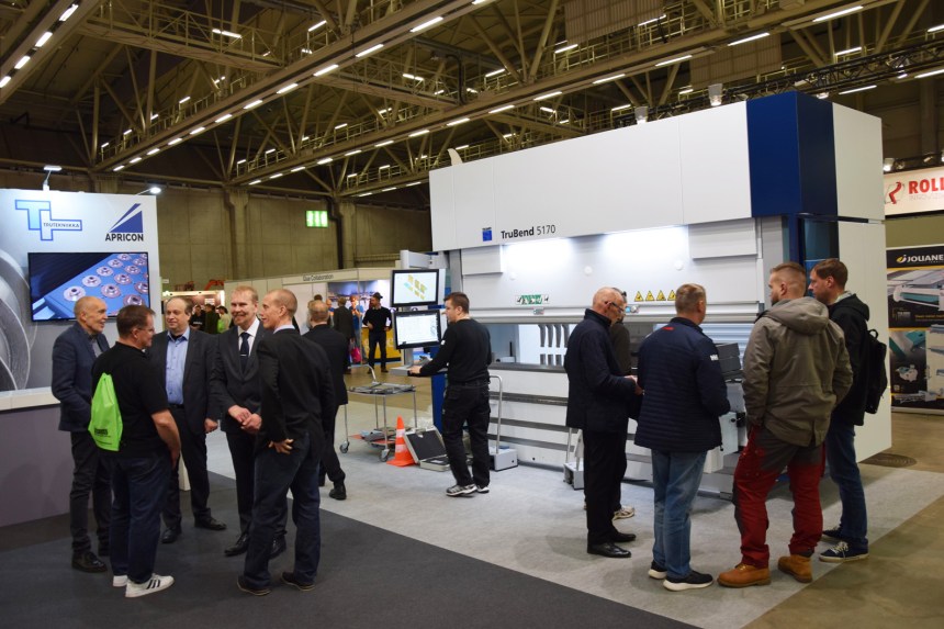 Teknologia 19 -messuilla kävi kolmen päivän kuluessa 14 558 vierailijaa, näytteilleasettajia oli mukana lähes 500Italialainen Top Automazioni oli mukana Levytyössä omalla osastollaan. Yritys valmistaa automaattisia, ohjauksesta oikealle tankokoolle säätyviä tankomakasiineja, jota tunnetaan hyvin myös Suomen konepajoilla. Messuosastolla oli Emiliano Palombi.Bosch Rexroth esitteli messuilla mm, uutta anturiteknologiaa, kuten koneisiin kiinnitettävää Bluetooth-yhteydellä toimivaa SCD-anturimoduulia. Lineaari- ja kokoonpanotekniikka kuului niin ikään osaston kiintopisteisiin.Messujen osa-alueita automaatio, elektroniikka, hydrauliikka ja pneumatiikka, levytyö, koneenrakentaminen, kunnossapito, AI ja robotiikka, kunnossapito sekä ICT. Salhydro oli mukana Hydrauliikassa ja pneumatiikassa laajalla tuotepaletilla.Sujuvaa materiaalinsiirtoa. Messuilla ensiesittelyssä olleet Agilox-automaattitrukit ovat uusimpia teknologioita hyödyntävä itsenäisetsi toimiva älyohjattu ratkaisu varastologistiikkaan. Suomen edustus Posicraft.Machinery esitteli messuilla mm. uutta Jouanel-edustustaan. Jouanelin paletissa ovat levyleikkurit ja arkki- ja rainalinjat. Machineryn miehet ryhmäkuvassa vasemmalta Arto Iivonen, Toni Mäkelä, Mika Wendell, Kari Raivonen ja Sami Vornanen. Robotiikkaa messuilla oli mukana moneen lähtöön. Wisematic toimittaa joustavia automaatioratkaisuja pitkälle räätälöityinä asiakkaidensa tarpeisiin, ja paletissa ovat mm. kuvan yhteistyörobotit, 6-akseliset robotit sekä robottisolut.Levytyön kookkain kone: Trutekniikka esitteli messuilla Trumpfin teknologiaa, ja mukana osastolla oli TruBend 5000-särmäyspuristinsarjan malli TruBend 5170. Puristusvoima monipuolisessa koneessa 1700 kN, taivutuspituus vakiona 3230 mm, optio 4250 mm.AM-palvelua Lahdesta: Materflow on digitaalisten valmistuspalveluiden tarjoaja. Yritys on toiminut muovin alueen tulostajana pitkään, ja nyt yritys toimii myös metallin tulostuksen alueella. Messuilla osastolla oli perustaja/toimitusjohtaja Timo Peltonen.Teknologia 19-kokonaisuuteen kuului erittäin vahva puheenvuoro, paneelikeskustelu- ja seminaarianti. Puheenvuoroja ja tietokuja pidettiin useilla lavoilla messualueella. Softabilityn Mikko Luukkosen teemana olivat Viesti-etätukijärjestelmän mahdollisuudet.Teknologia 19:sta levytyössä oli mukana Wihuri Oy Tekninen kauppa osastollaan. Teemana olivat mm. Mazakin laserit. Loppuvuonna toimituksessa on useita Mazak-lasertoimituksia, kertoivat osastolla Petteri Pehkonen ja Matti Ranta.