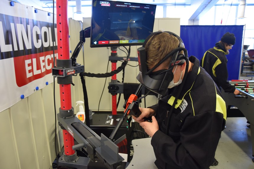 Simulointiympäristöjen avulla opiskelijat opiskelevat aidontuntuisissa tilanteissa ja saavat taidoistaan myös välitöntä palautetta. Kuvassa Jukka Saastamoinen demoaa hitsauksen simulointikokonaisuutta.
