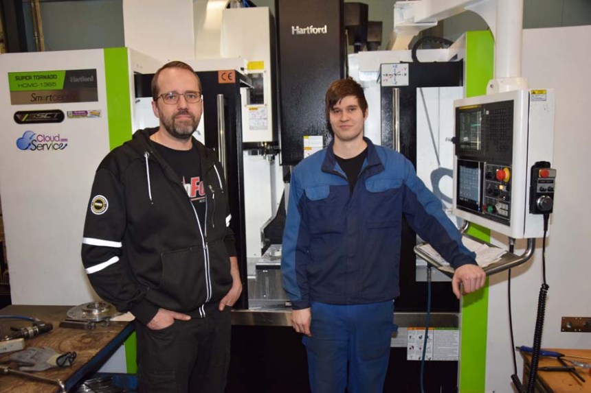 Uusi Hartford tarjoaa Rintalan mukaan tukun hyviä ominaisuuksia käytännön töihin. ”Koneessa on mukana neljäs pyörähdysakseli, mikä vahvistaa palvelujamme jatkossa. Teemme pyörähdyssymmetrisiä kappaleita, joiden koneistuksia voimme tehdä tällä koneella nyt sorvien sijaan. Lisäksi otimme CAMin tukemaan ohjelmointia, jotta pystymme vastaamaan kysyntään aiempaa paremmin. Sorvien ohjaukset ovat olleet jo monipuolisemmat, mutta jyrsintäpuolelle CAMi on erittäin tervetullut uudistus, Rintala sanoo. Pöytäkoko koneessa on 1400 x 650 mm, ja akseliliikkeet X 1300, Y 650, Z 630 mm.
