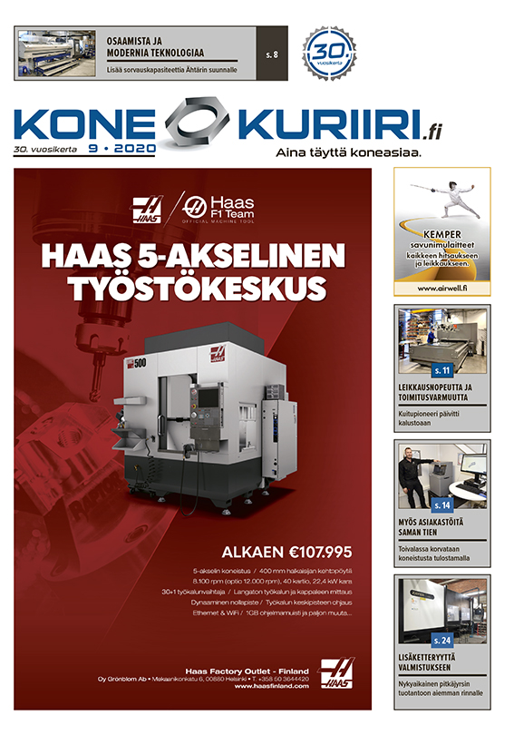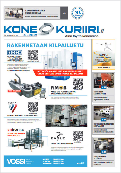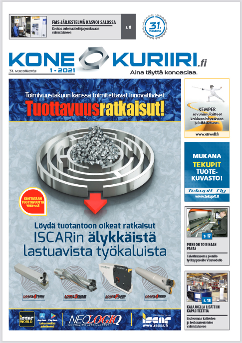 Konekuriirin tammikuun numero 1/2021 on ilmestynyt. Konepajojen koneiden, laitteiden ja palvelujen erikois- ja ajankohtaisjulkaisun tämän vuoden ensimmäisen numeron sisältö on jälleen täyttä asiaa! Lehdestä löytyvät ajankohtaisimmat konemarkkinat sekä uutuus- ja uutisasiaa tutun runsaasti eri tahoilta. Investointiartikkeleita on mukana mm. Salosta, Kalajoelta, Eurajoelta ja Visuvedeltä. Tammikuun numero aloittaa lehden 31. vuosikerran. Klikkaa ja lue.