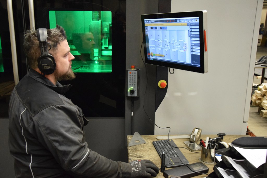 Ensiksi tarkastelussa oli REGIUS 3015 AJ 12 kW, Amadan lasereiden lippulaivamalli, missä mukana on useita avainteknologioita. Sellainen on mm. älykäs leikkuupään hallintajärjestelmä.