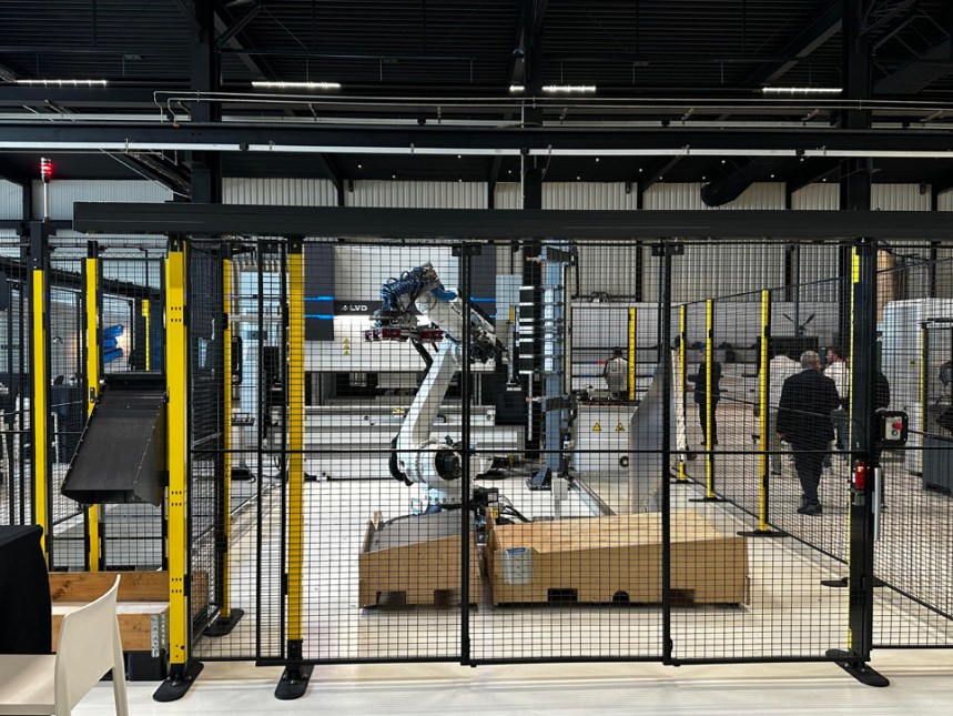 Katsottavaa riitti, järjestelmien osien valmistukseen tehtaalla sadan metrin pituisessa tuotantohallissa on tuoreena investointina käytössä kookas ja monipuolinen leikkauksen ja lajittelun Smart Factory -täysautomaatiojärjestelmä.